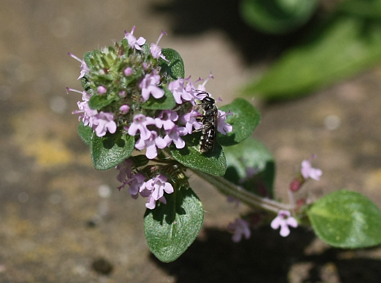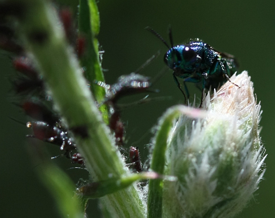 Die Goldwespe interessiert sich auffallend für die Blattläuse.