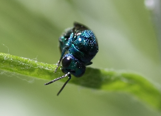 Die Goldwespe im Jahr 2012 war hinter dem Kopf rot, diese ist blau.